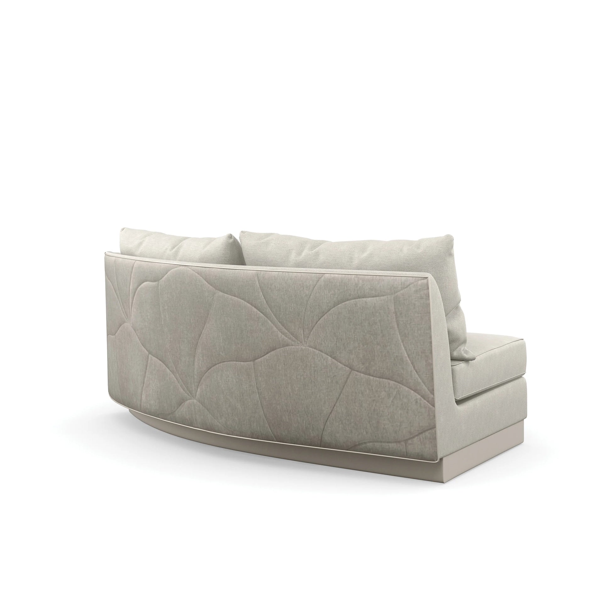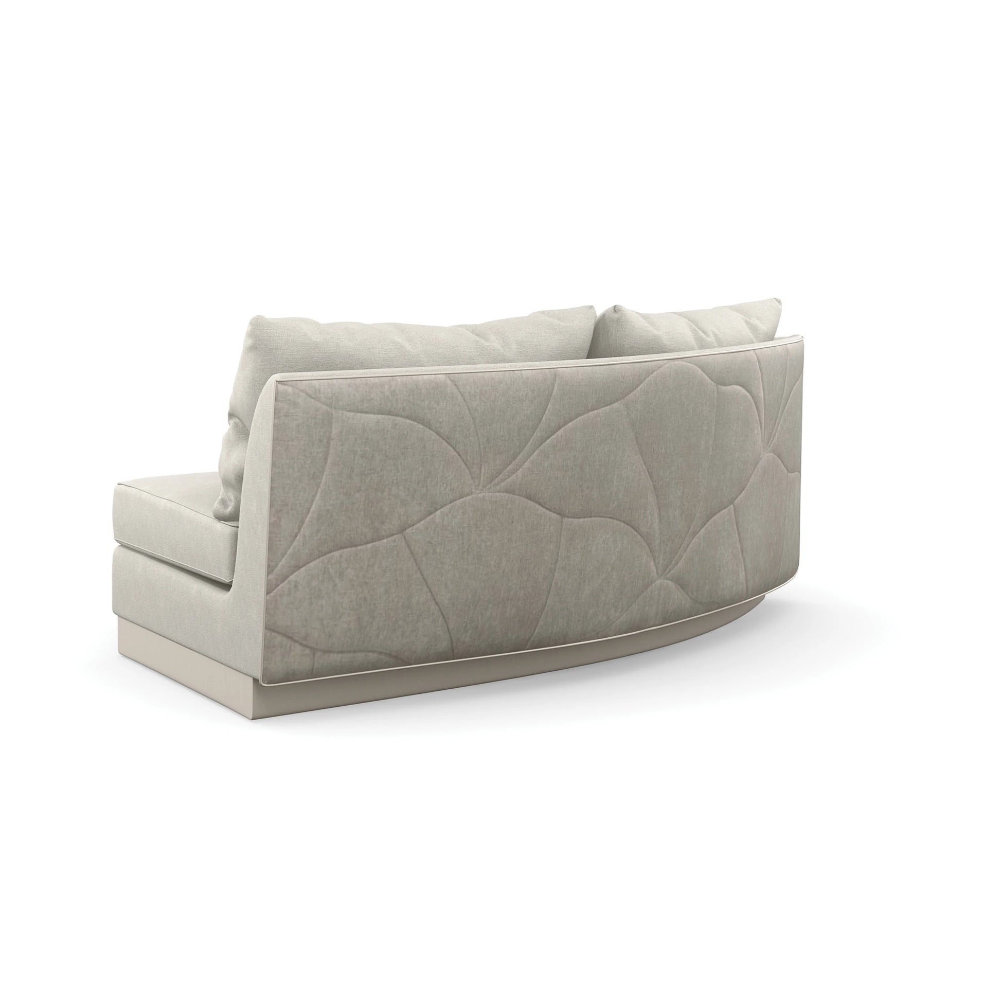 Fluido y orgánico, el Fanciful presenta curvas suaves realzadas artísticamente por un patrón acolchado de hojas de ginkgo que se despliega a lo largo del respaldo y los costados. Su diseño inspirado en la naturaleza agrega interés gráfico y dimensión, complementado por una base tipo zócalo curvo envuelta en vinil perlado.